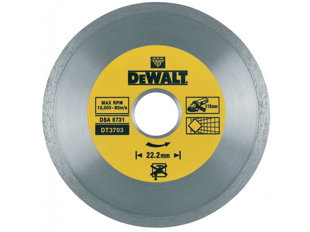 DT3703 DeWALT Diamantový kotouč se spojitým obvodem ze slinutých karbidů 115x22,2mm