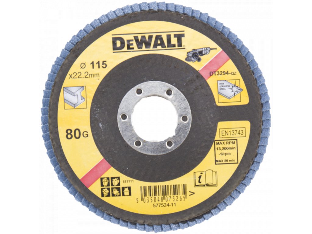 DT3294 DeWALT Brusný lamelový kotouč na kov - plochý 115x22,2x80G flat Typ 27