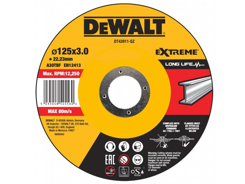 DT43911 DEWALT VYPOUKLÝ KOTOUČ 125 X 22,2 X 3,0MM NA ŘEZÁNÍ KOVU