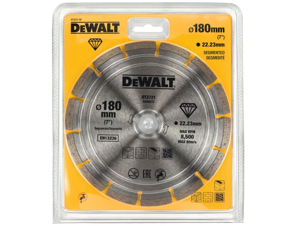 DT3721 DEWALT DIAMANTOVÝ KOTOUČ 180 X 22,2 MM SE SEGMENTOVÝM OBVODEM PRO SUCHÉ ŘEZÁNÍ, ZE SLINUTÝCH KARBIDŮ