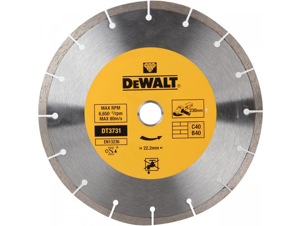 DT3731 DEWALT DIAMANTOVÝ KOTOUČ PRO SUCHÉ ŘEZÁNÍ BETONU A CIHEL ZE SLINUTÝCH KARBIDŮ 230X22,2MM