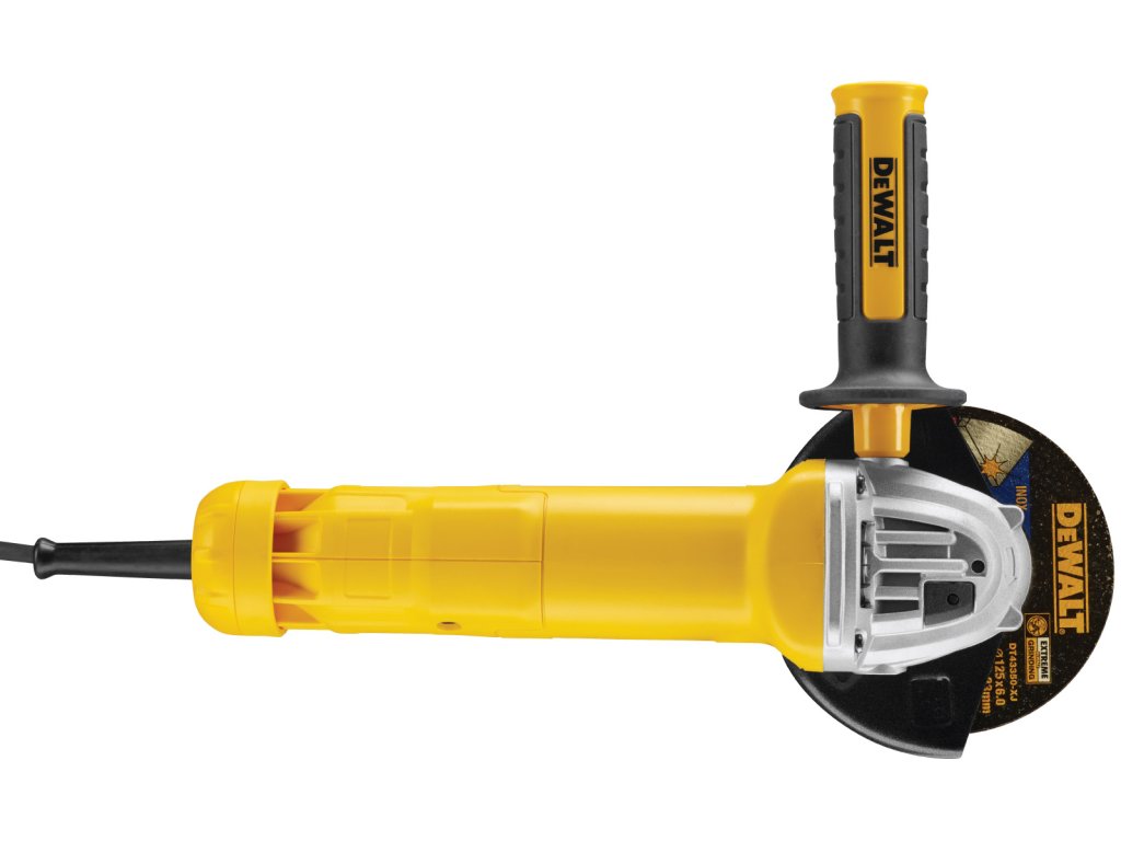 DWE4203 DeWALT ÚHLOVÁ BRUSKA 125mm SE SPODNÍM, KOLÍBKOVÝM SPÍNAČEM , 1 010W