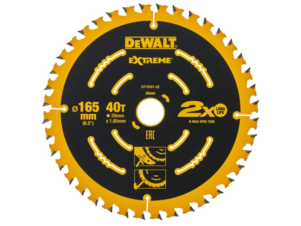 DT10301 Pilový kotouč pro aku pily 165x20mm, 40zubů, ATB +20°, jemný řez DeWALT
