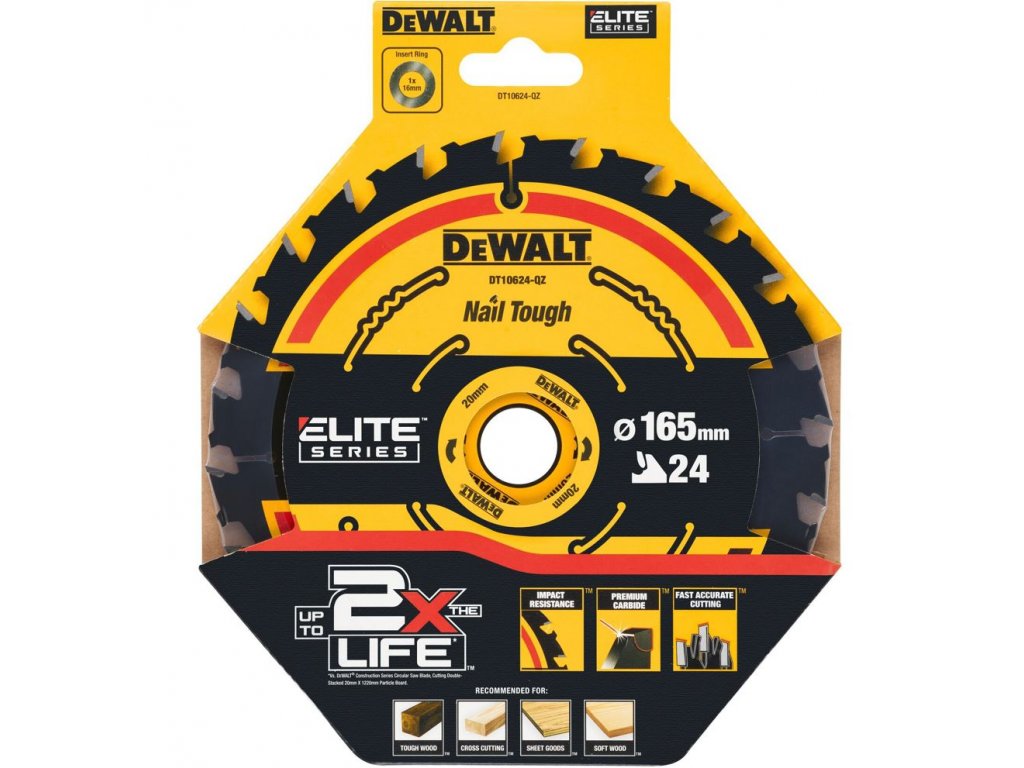 DT10624 DEWALT PILOVÝ KOTOUČ 165 X 20MM, 24 ZUBŮ, ATB +20°, UNIVERZÁLNÍ ŘEZ