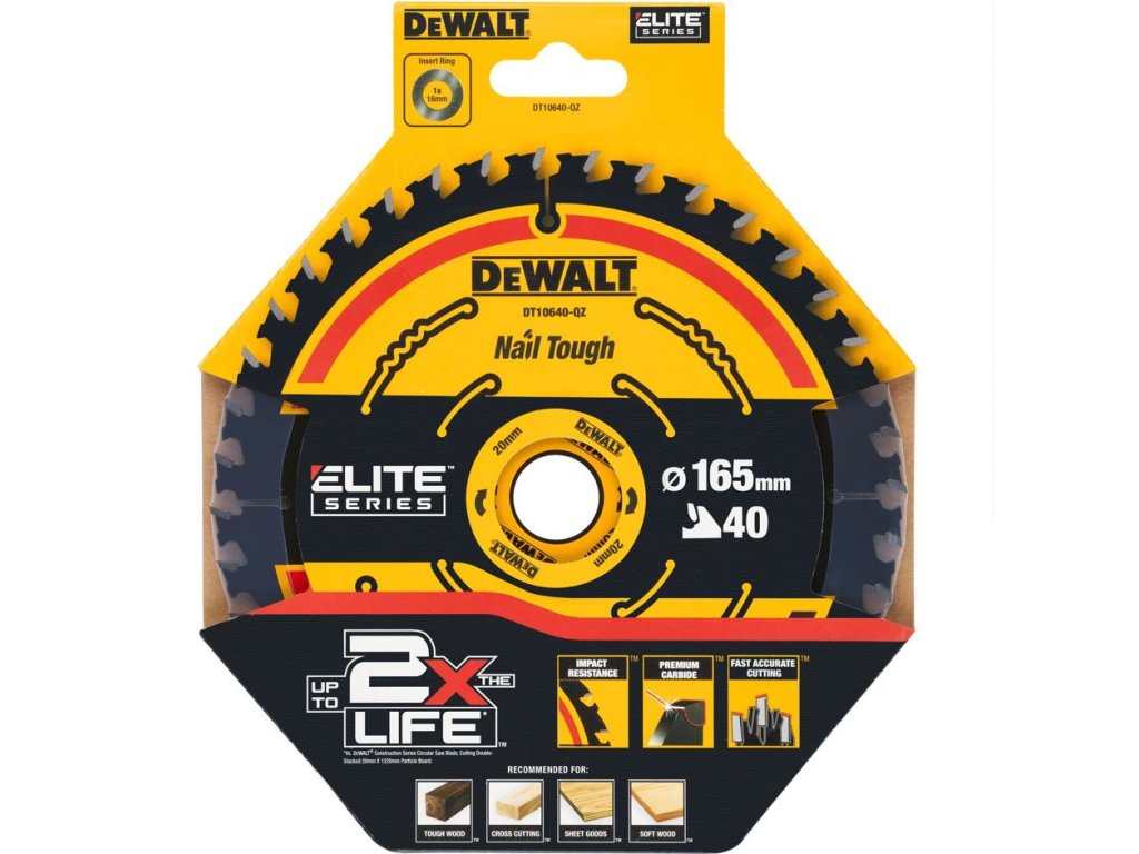 DT10640 DeWALT Pilový kotouč pro aku pily 165 x 20 mm, 40 zubů, ATB +20°, jemný řez