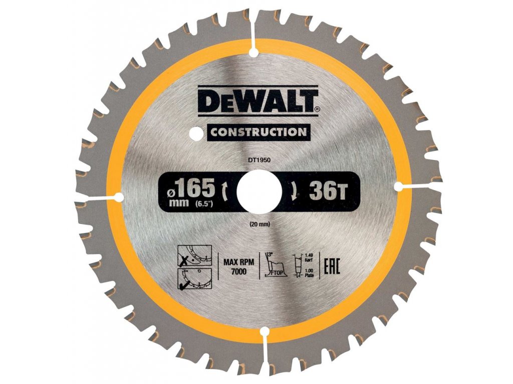 DT1950 DEWALT PILOVÝ KOTOUČ 165 x 20 mm, 40 zubů, FTOP 3°, šířka kotouče 1 mm - AKU pily