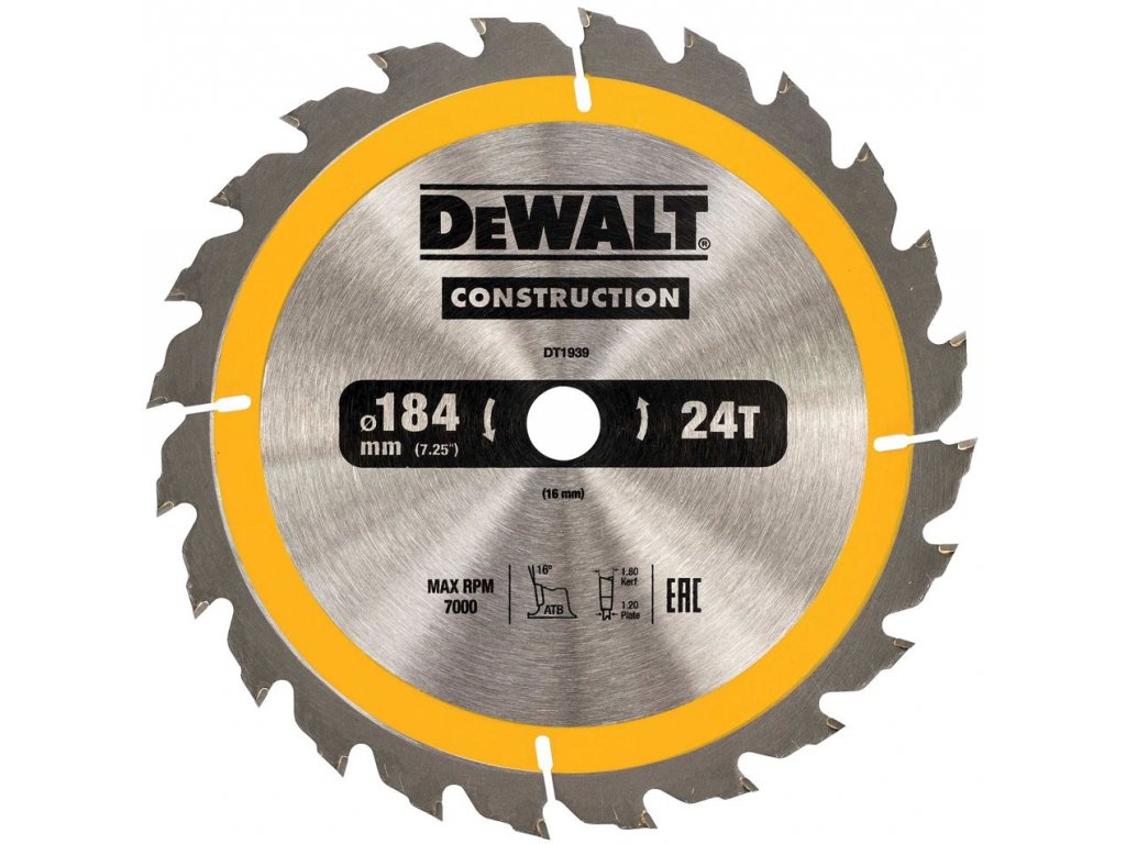 DT1939 DEWALT PILOVÝ KOTOUČ PRO KOT. PILY 184 X 16MM, 24 ZUB, PODÉLNÝ ŘEZ
