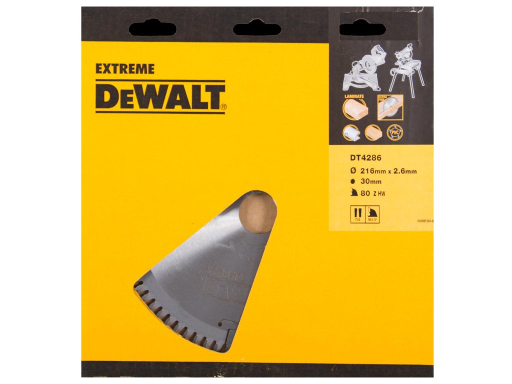 DT4286 Pilový kotouč DeWALT 216x30mm, 80zubů, TCG -5° na dýhu, laminát a hliník