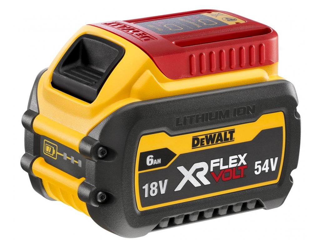 - DEWALT XR FLEXVOLT je konvertibilní baterie s napájecím napětím 18/54 V zcela zpětně kompatibilní s existujícími výrobky DEWALT řady XR s napájecím napětím 18 V a s možností zvýšit své napětí na nebývalých 54 V, pro použití ve velkých strojích s velkým výkonem.