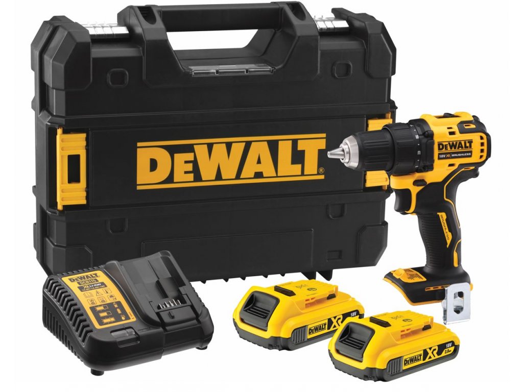DCD708D2T DEWALT 18V AKU BEZUHLÍKOVÁ VRTAČKA/ŠROUBOVÁK , 2X BATERIE XR LI-ION 2,0 AH, KUFR T-STAK