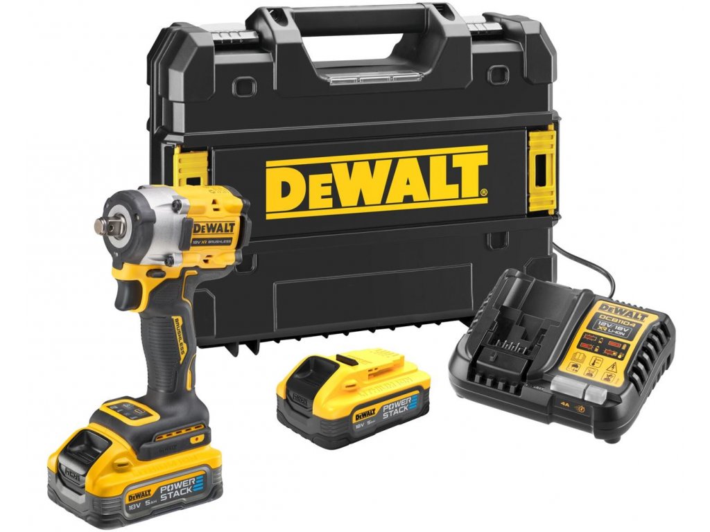 DCF921H2T DEWALT 18V AKU BEZUHLÍKOVÝ RÁZOVÝ UTAHOVÁK 1/2", 2 X POWERSTACK 5,0 AH BATERIE XR LI-ION, NABÍJEČKA, KUFR T-STAK