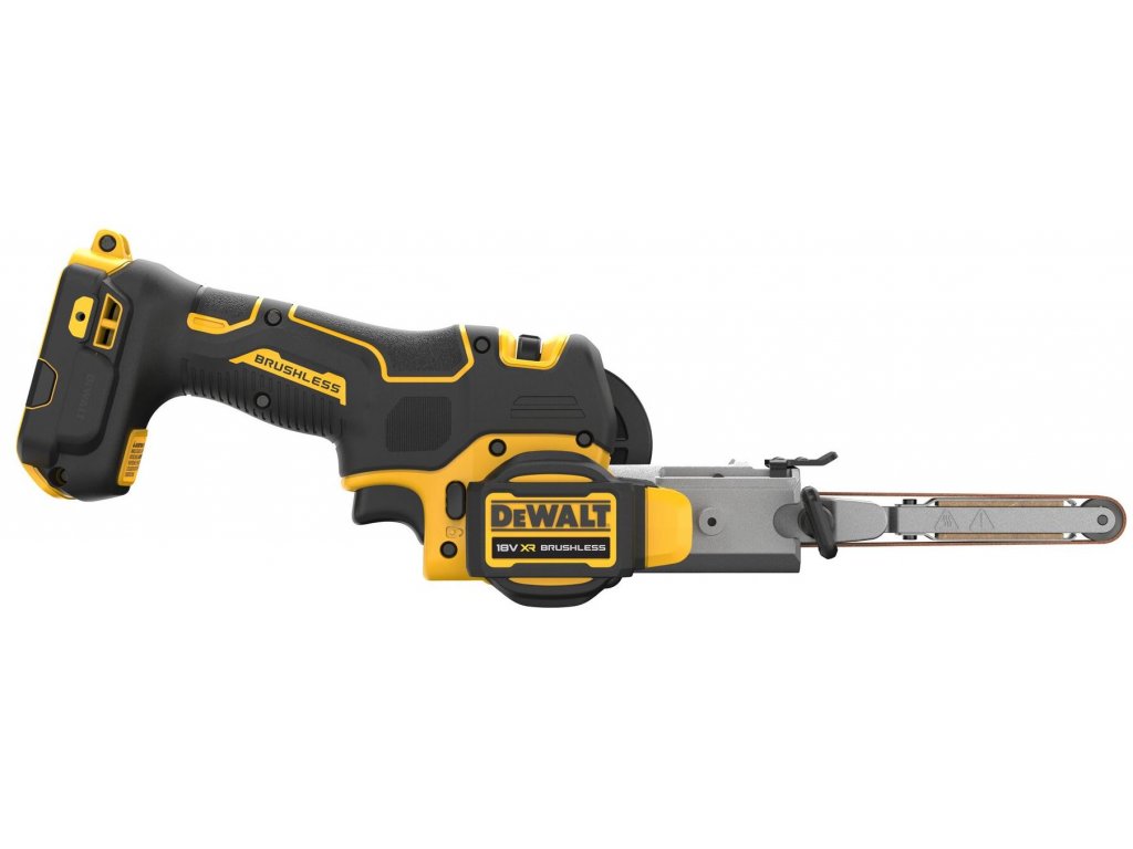 - Pásový pilník DCM200 je vybaven otočnou LED k osvětlení pracoviště a funkcí výměny pásu bez použití dalšího nářadí, která uživateli poskytuje vyšší míru pohodlí, mobility i všestrannosti