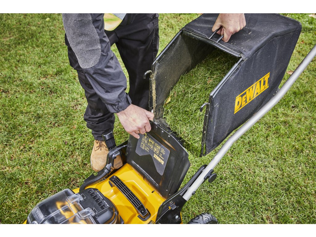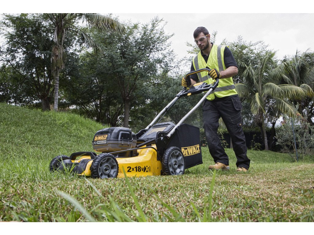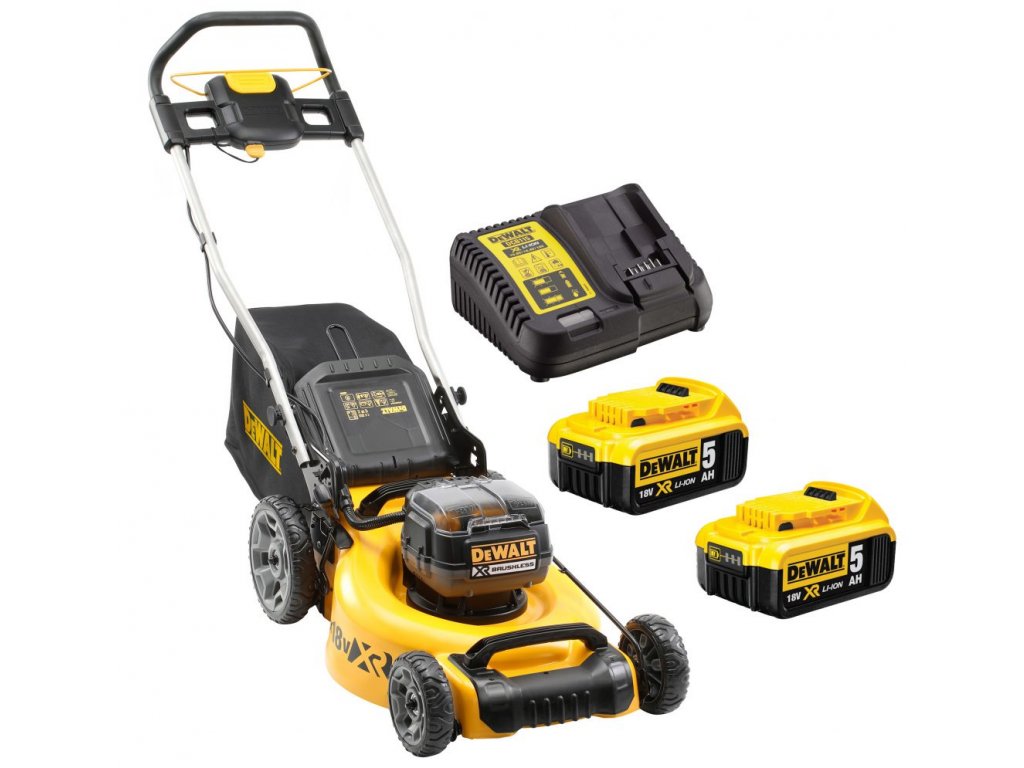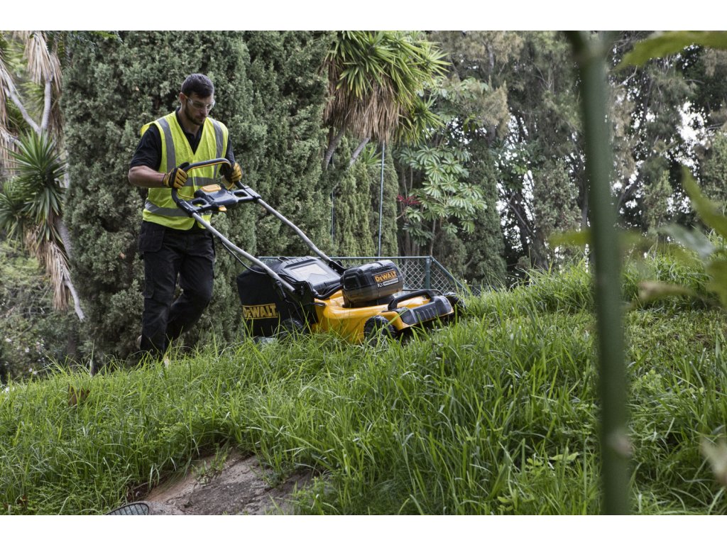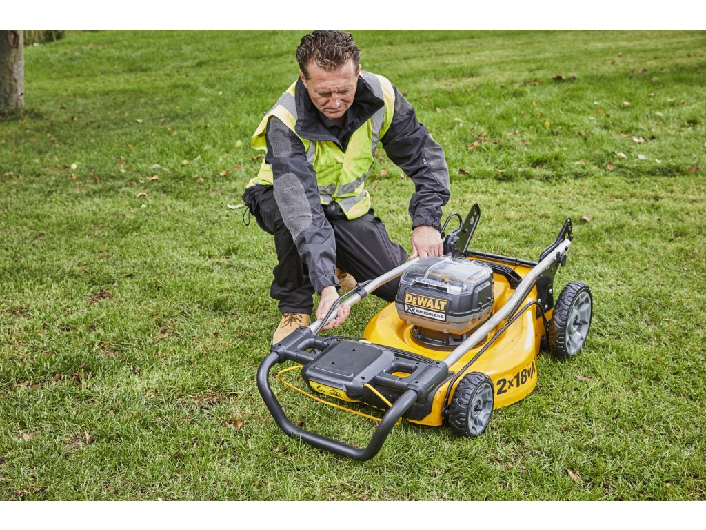 DCMW564P2 DEWALT AKU BEZUHLÍKOVÁ SEKAČKA NA TRÁVU 2X18V, 2 X 5,0 AH BATERIE XR LI-ION, NABÍJEČKA
