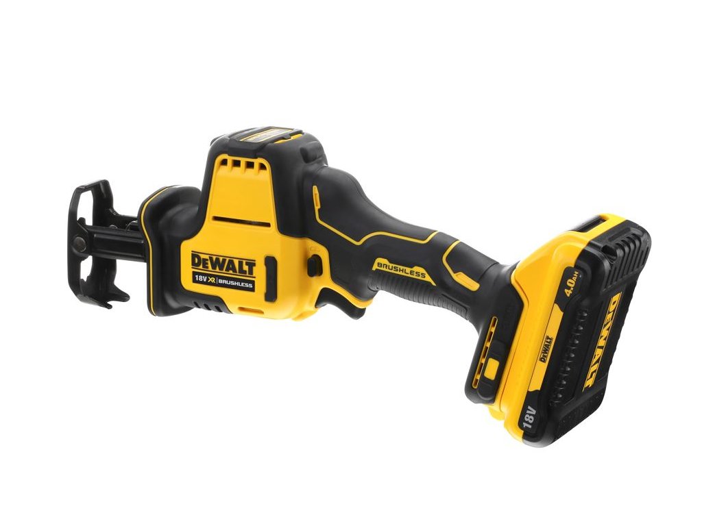 DCS369M2 DEWALT 18V AKU BEZUHLÍKOVÁ KOMPAKTNÍ MEČOVÁ PILA, 2 X 4,0 AH BATERIE, NABÍJEČKA, KUFR T-STAK