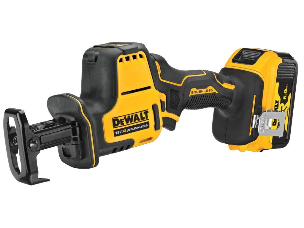 DCS369P2 DEWALT 18V AKU BEZUHLÍKOVÁ KOMPAKTNÍ MEČOVÁ PILA, 2 X 5,0 AH BATERIE, NABÍJEČKA, KUFR T-STAK