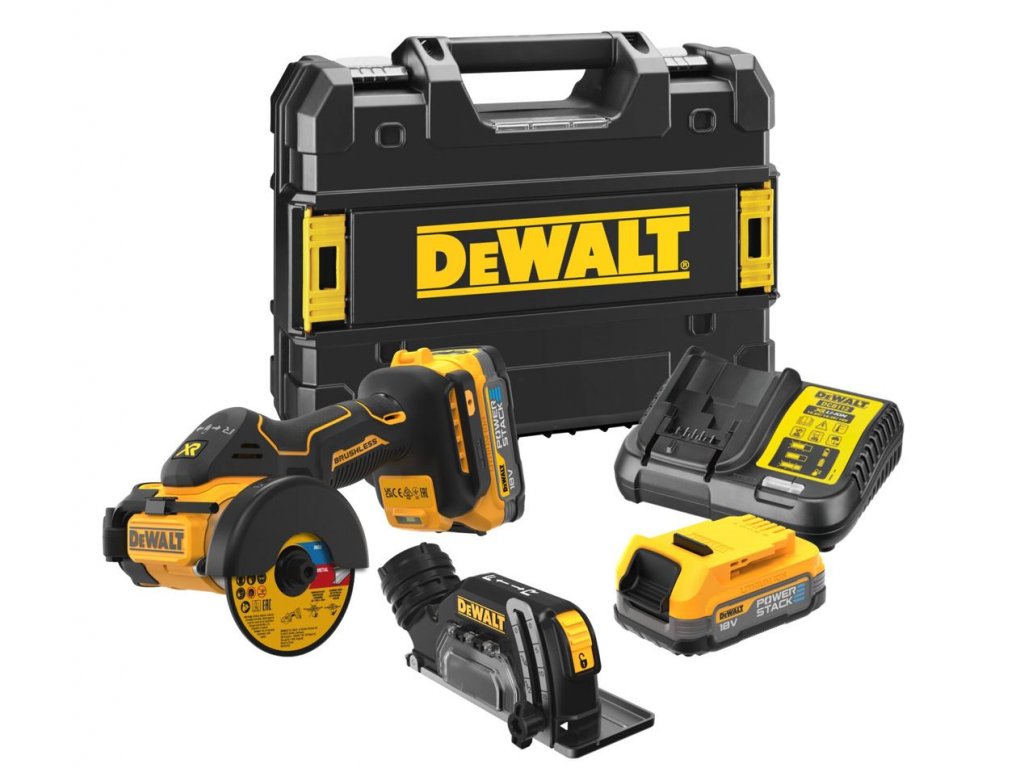 DCS438E2T DEWALT 18V AKU BEZUHLÍKOVÁ UNIVERZÁLNÍ ŘEZAČKA, 2 X 1,7 AH BATERIE POWERSTACK, NABÍJEČKA, KUFR T-STAK