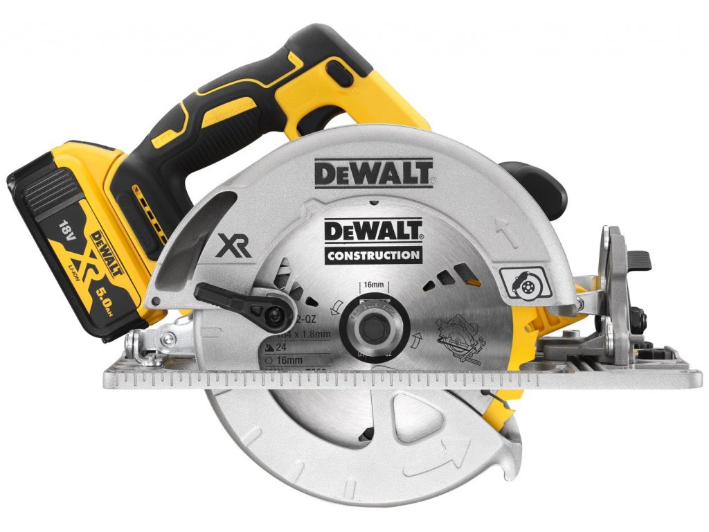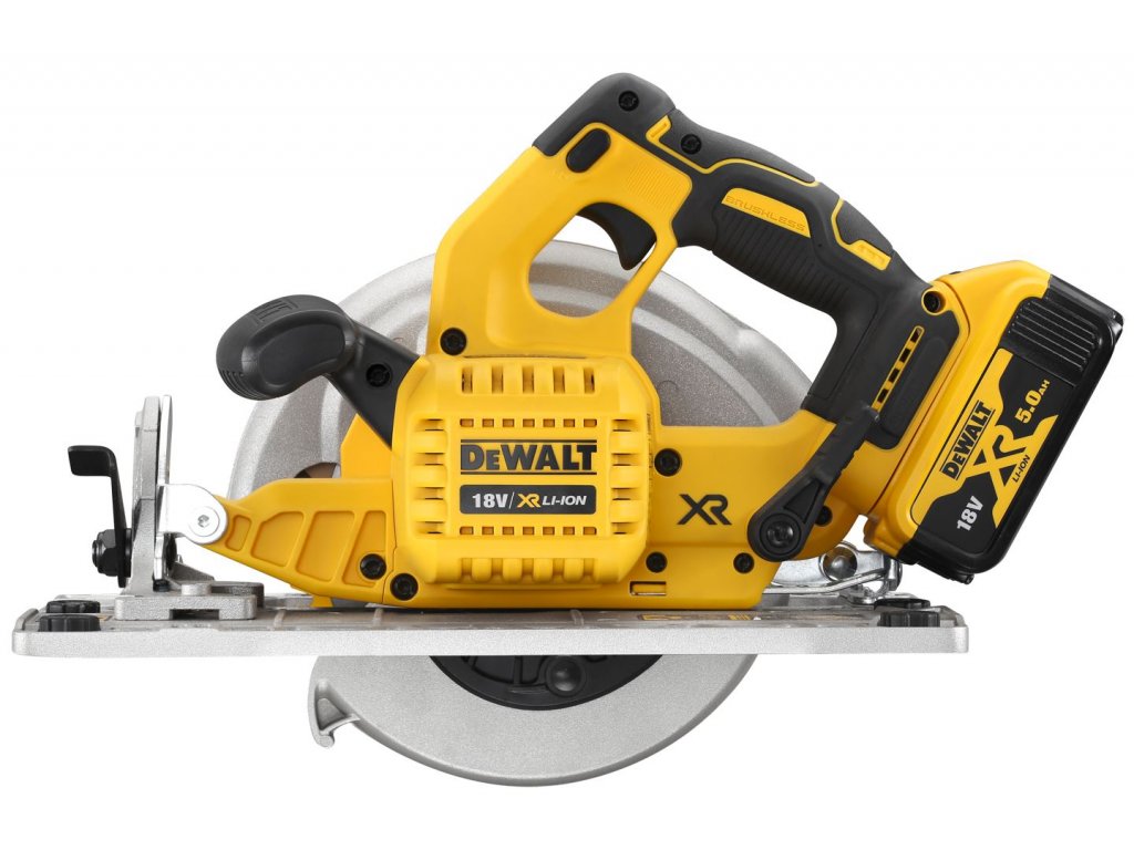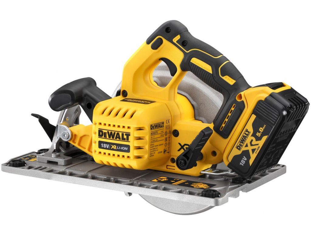 DCS572P2 DEWALT 18V AKU BEZUHLÍKOVÁ KOTOUČOVÁ PILA, 184 X 14 MM, 2 X 5,0 AH BATERIE, NABÍJEČKA, KUFR T-STAK