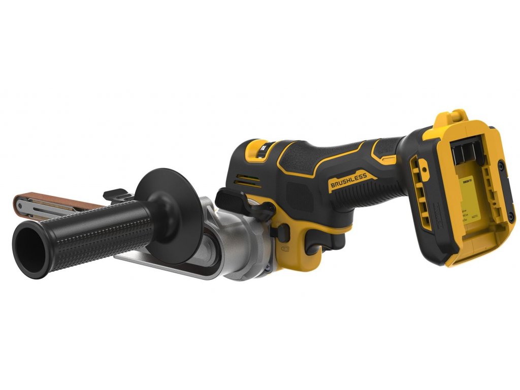 - Pásový pilník DCM200 je vybaven otočnou LED k osvětlení pracoviště a funkcí výměny pásu bez použití dalšího nářadí, která uživateli poskytuje vyšší míru pohodlí, mobility i všestrannosti