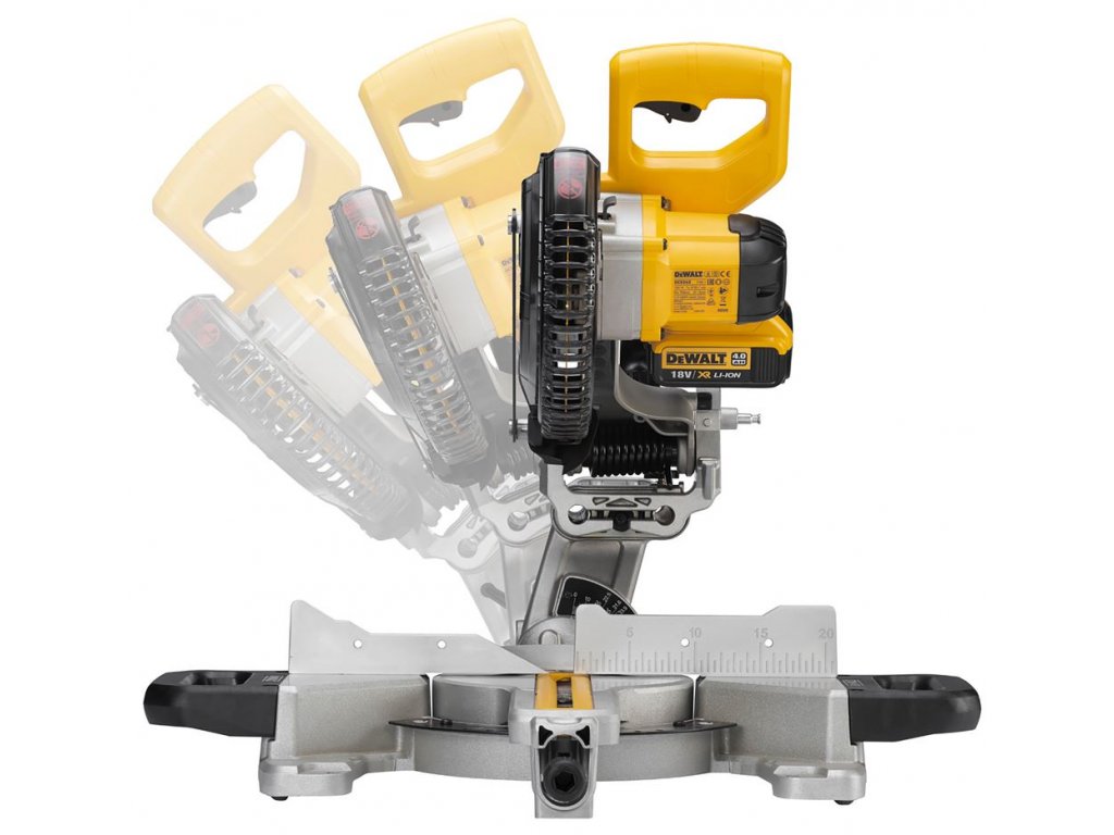 - Mechanismus duálních posuvných vodítek poskytuje maximální podpěru při řezání velkých kusů materiálu v jakémkoliv úhlu nebo v kombinaci úhlů.