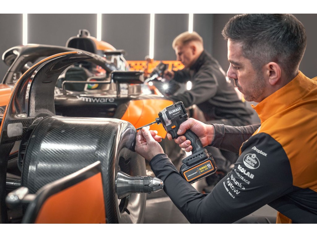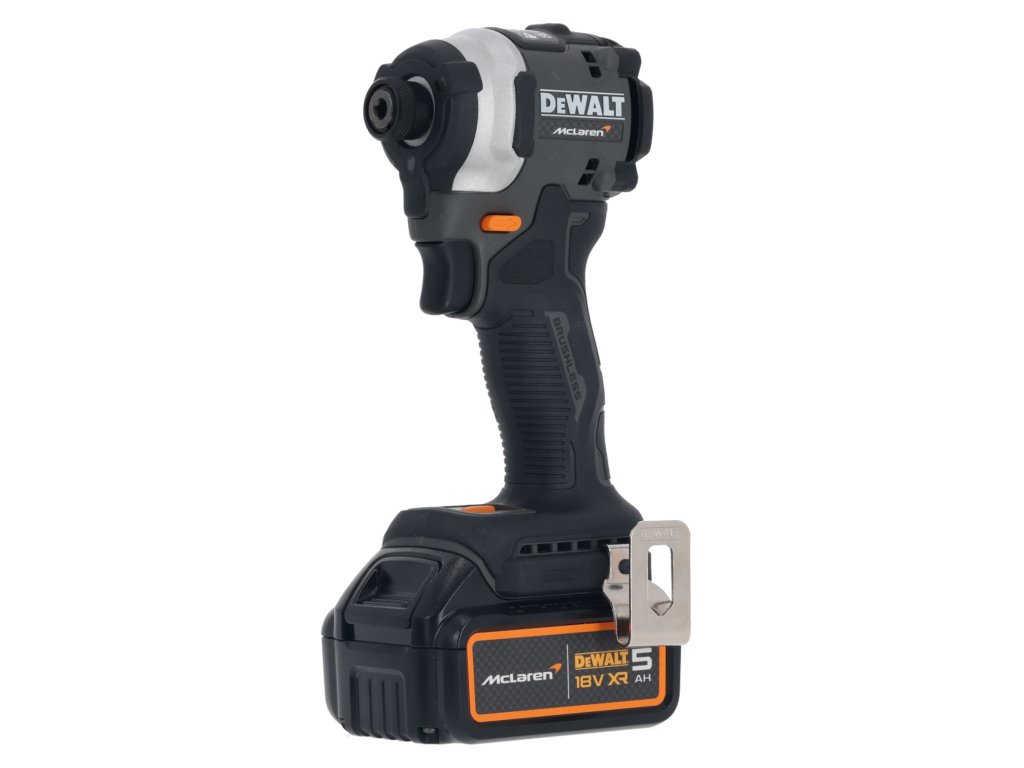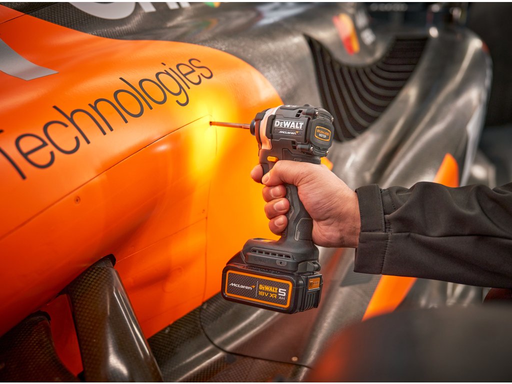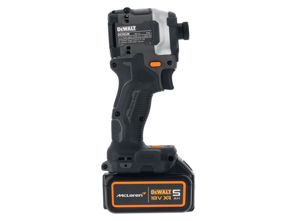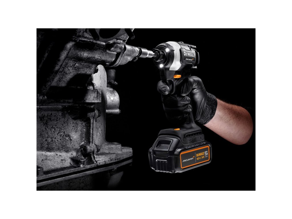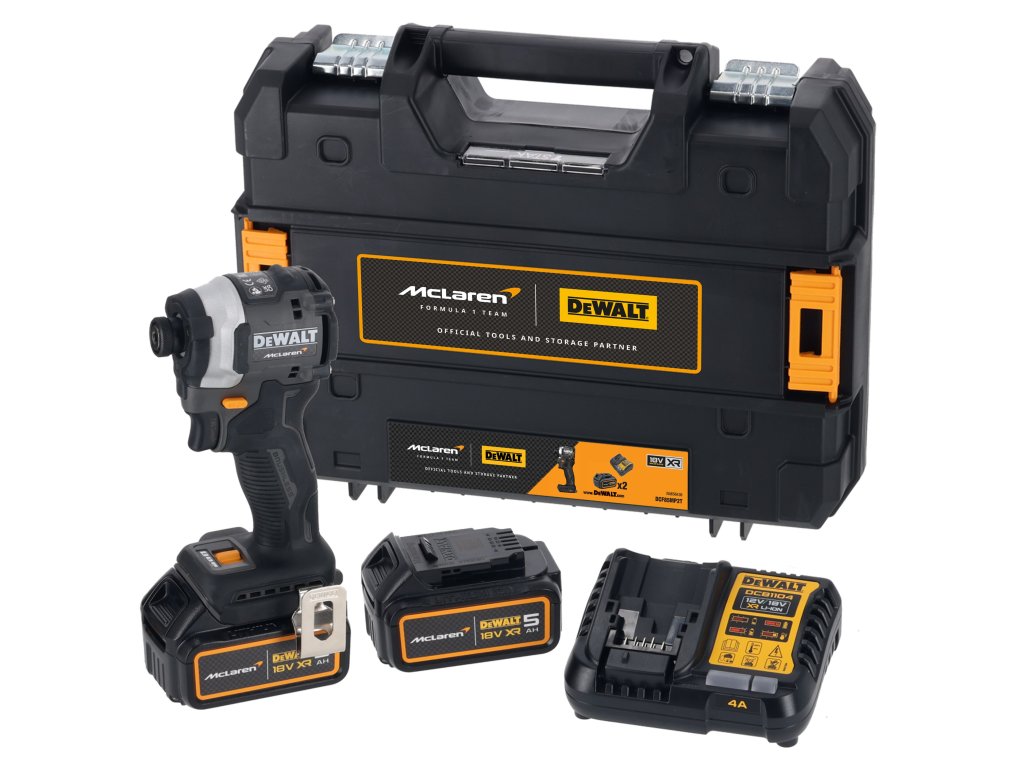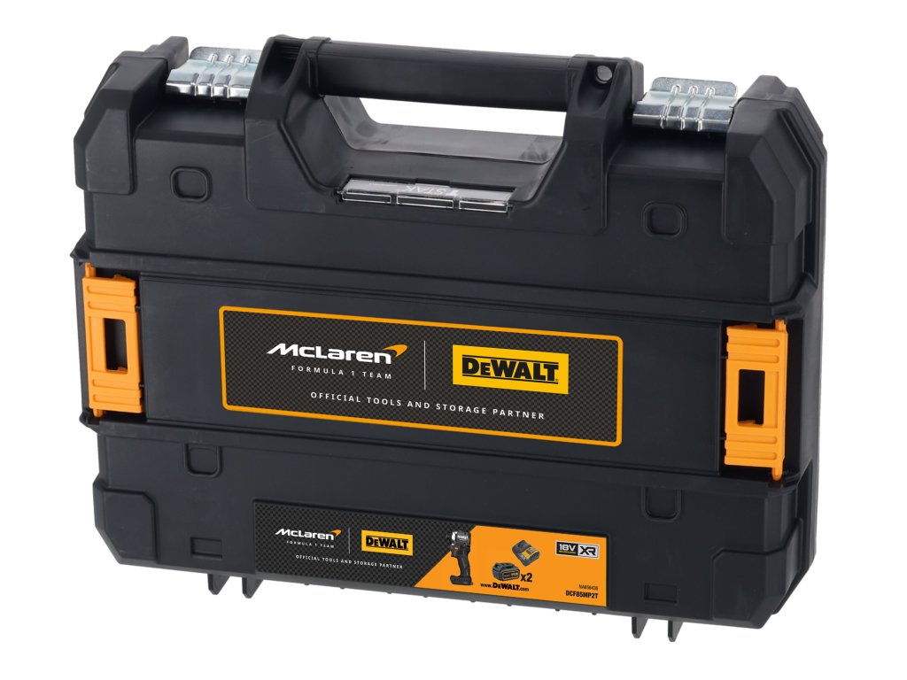 DCF85MP2T DEWALT MCLAREN 18V AKU BEZUHLÍKOVÝ RÁZOVÝ UTAHOVÁK 1/4", 2 X 5,0 AH, NABÍJEČKA, KUFR T-STAK