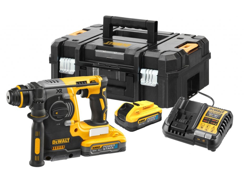 DCH273H2T DEWALT 18 V AKU BEZUHLÍKOVÉ, KOMBINOVANÉ KLADIVO SDS PLUS, 2 X POWERSTACK 5,0 AH BATERIE, NABÍJEČKA, KUFR T-STAK