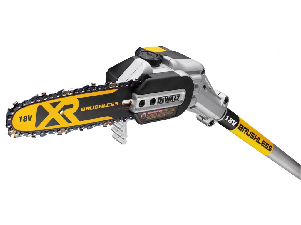 - Náklon hlavy umožňuje lépe kontrolovanou polohu při řezání větví