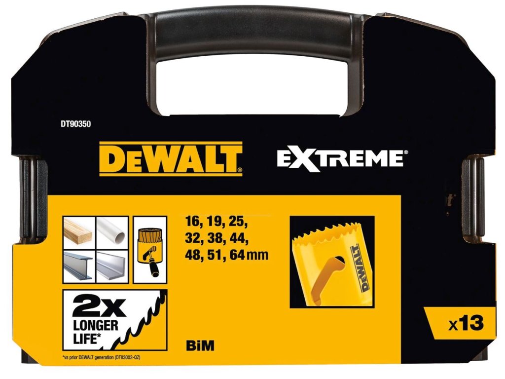 DT90350 DEWALT 13DÍLNÁ SADA BIMETALOVÝCH VYKRUŽOVACÍCH KORUNEK