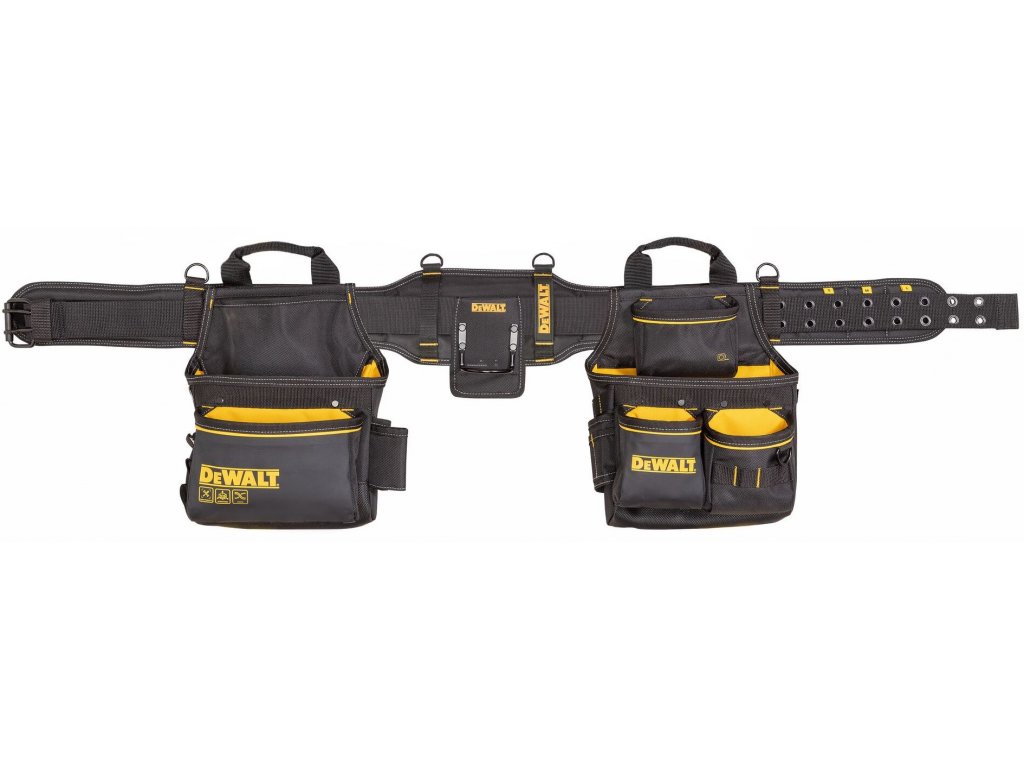 - Polstrovaný pásek s přizpůsobitelnou velikosti s 25 přihrádkami, 4 upevňovacími body a dvěmi přenášecími madly včetně dvou poutek pro uchycení kladiva