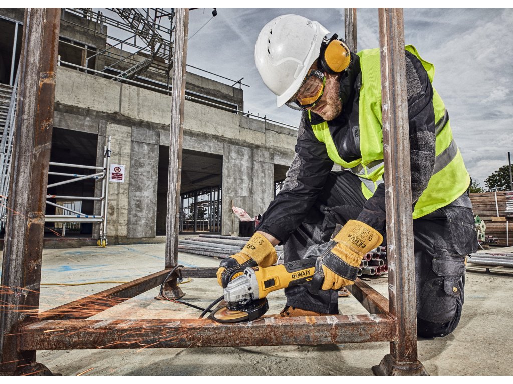 DWE4357 DEWALT BEZUHLÍKOVÁ ÚHLOVÁ BRUSKA 125MM, 1700W, S REGULACÍ OTÁČEK