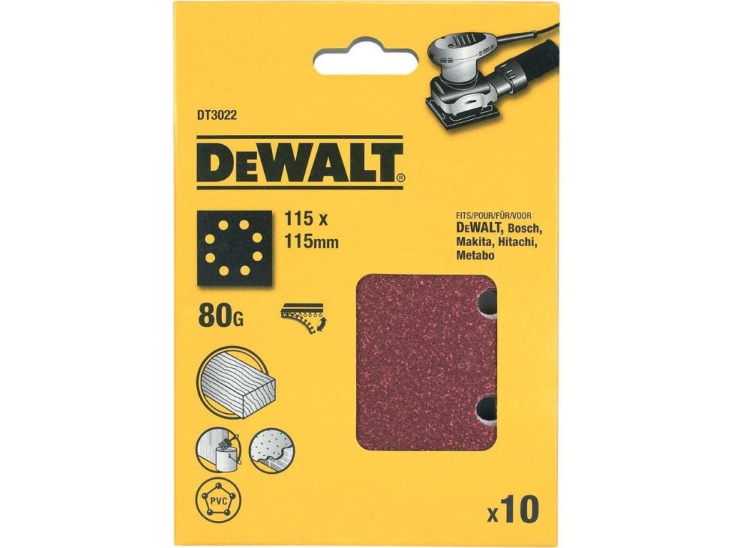 DT3022 DEWALT Brusný papír 115 x 115 mm, P 80, 10 ks v bal, suchý zip