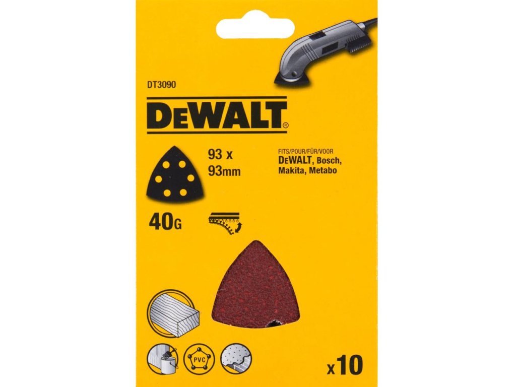 DT3090 DEWALT BRUSNÝ PAPÍR P 40, PRO DELTA BRUSKU 93 X 93 MM, 10 KS