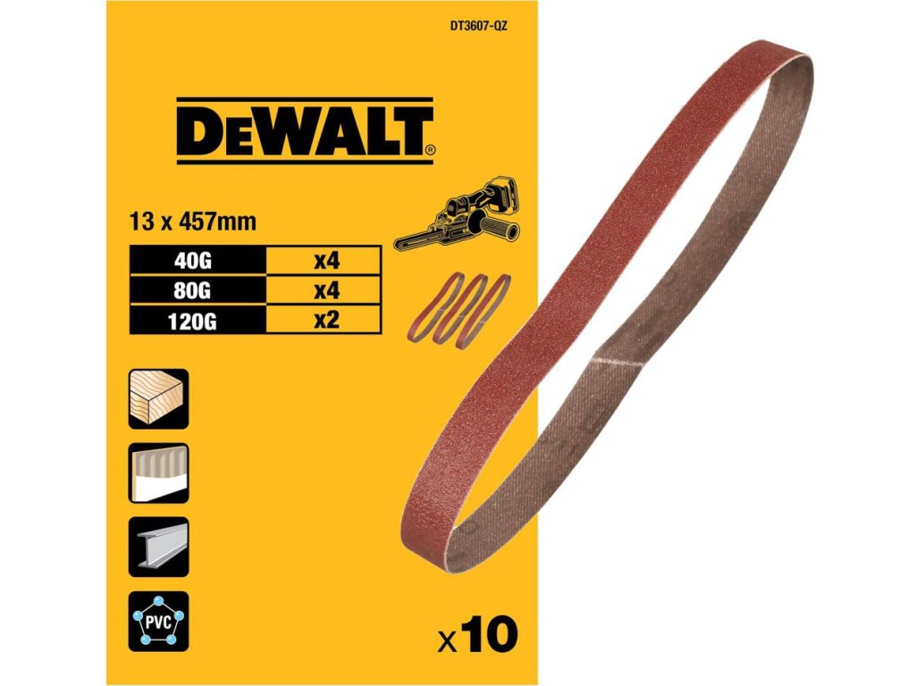 DT3607-QZ DEWALT BRUSNÉ PÁSY MIX, 10 KS, 13 X 457 MM, 40, 80, 120 G