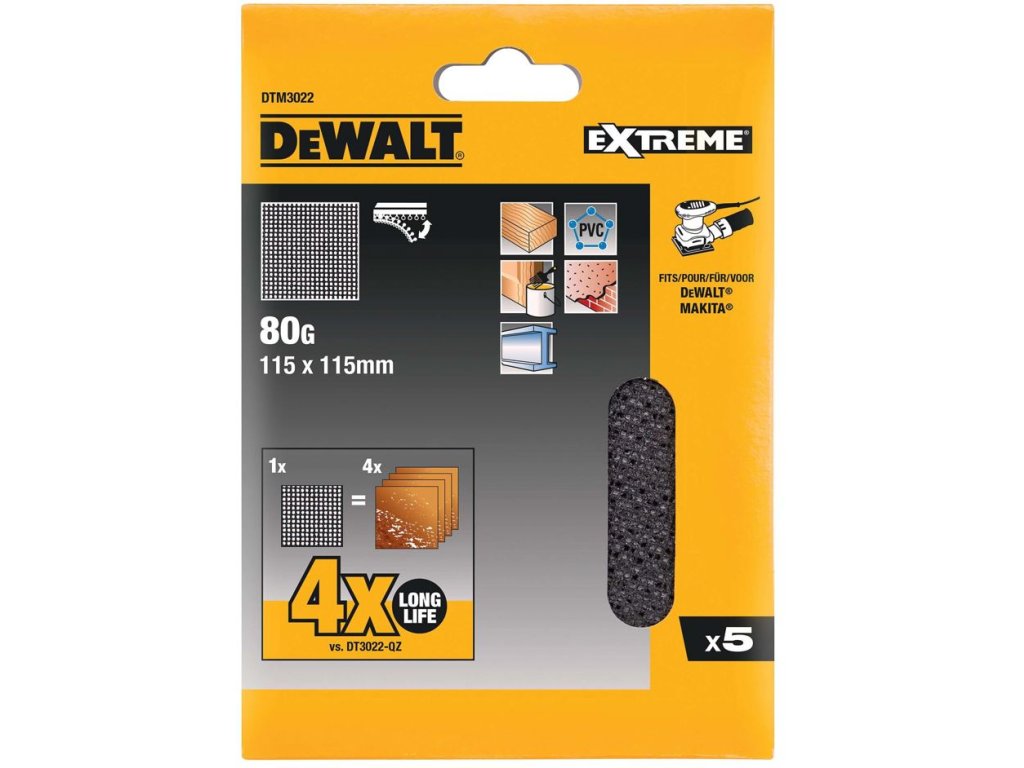 DTM3022 DEWALT BRUSNÁ MŘÍŽKA EXTREME 115 x 115MM, 5KS, P80, PRO VIBRAČNÍ BRUSKU