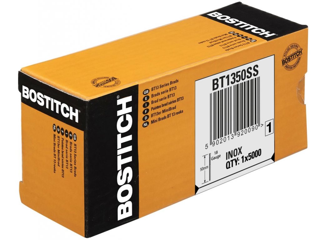 BT1350SS BOSTITCH NEREZOVÉ KOLÁŘSKÉ HŘEBÍČKY S T HLAVIČKOU, 50MM DÉLKA, 5000KS, SPOJENÉ LEPIDLEM