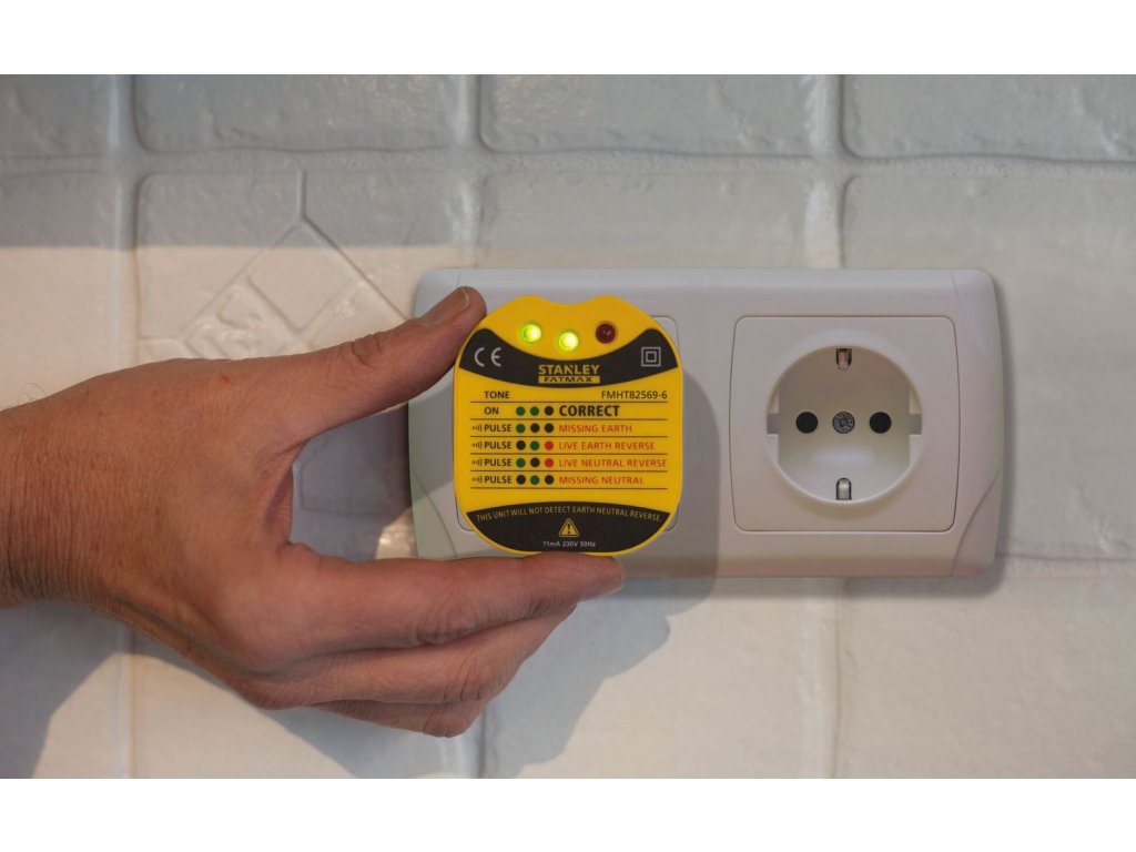 - Led kontrolky indikují stav zapojení (správné, chybějící uzemnění, přehození uzemnění s fází, přehození fází, chybějící nulák)