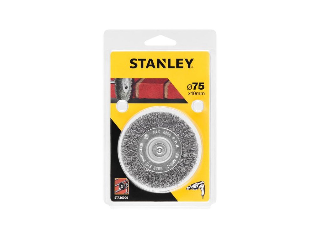 STA36000 STANLEY OKRUŽNÍ OCELOVÝ VLNITÝ KARTÁČ DO VRTAČKY ⌀ 75MM X 10MM, UPÍNACÍ STOPKA ⌀ 6MM