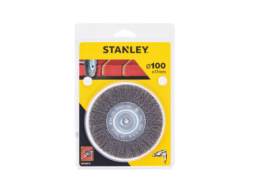 STA36015 STANLEY OKRUŽNÍ OCELOVÝ VLNITÝ KARTÁČ DO VRTAČKY ⌀ 100MM X 17MM, UPÍNACÍ STOPKA ⌀ 6MM