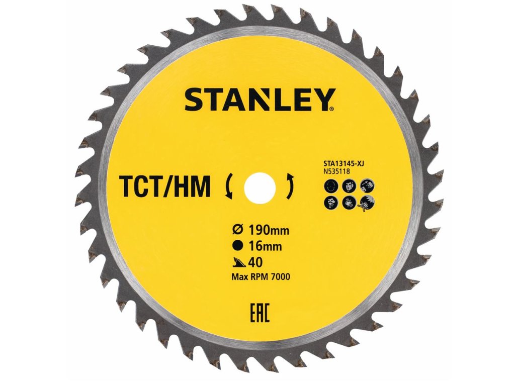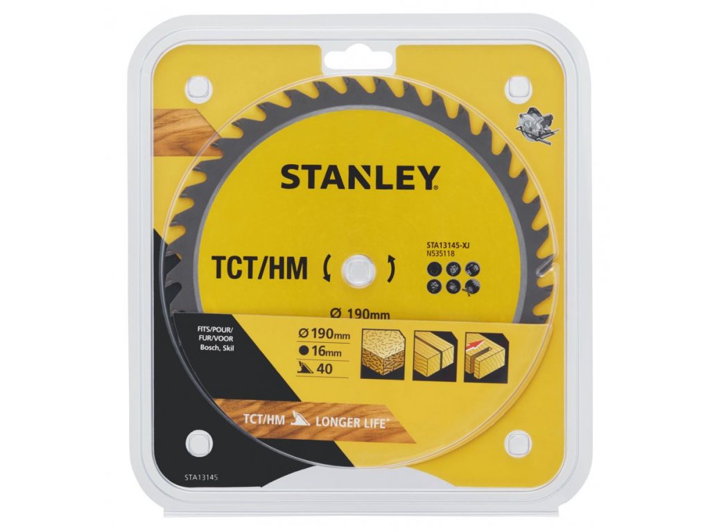 STA13145-XJ STANLEY PILOVÝ KOTOUČ TCT/HM 190 X 16 MM, PRO PŘÍČNÉ ŘEZY, 40 ZUBŮ