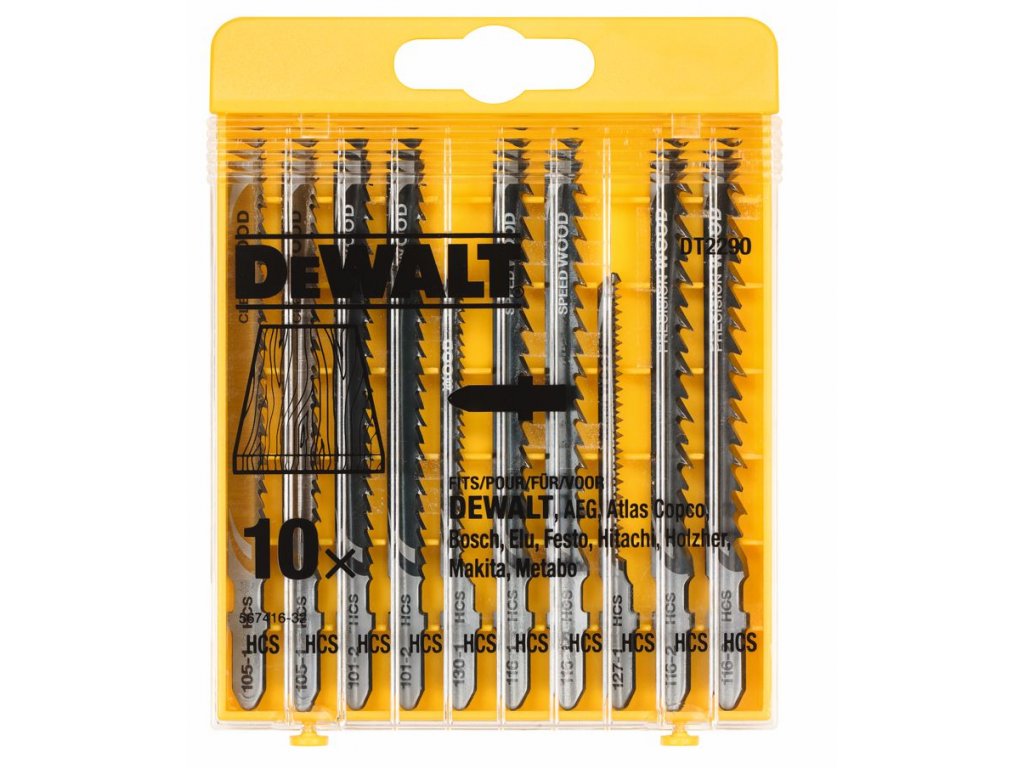 DT2290 DeWALT 10-ti dílná sada pilových plátků na dřevo pro přímočaré pily