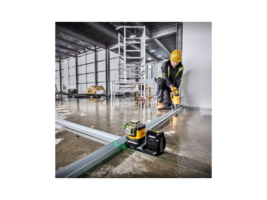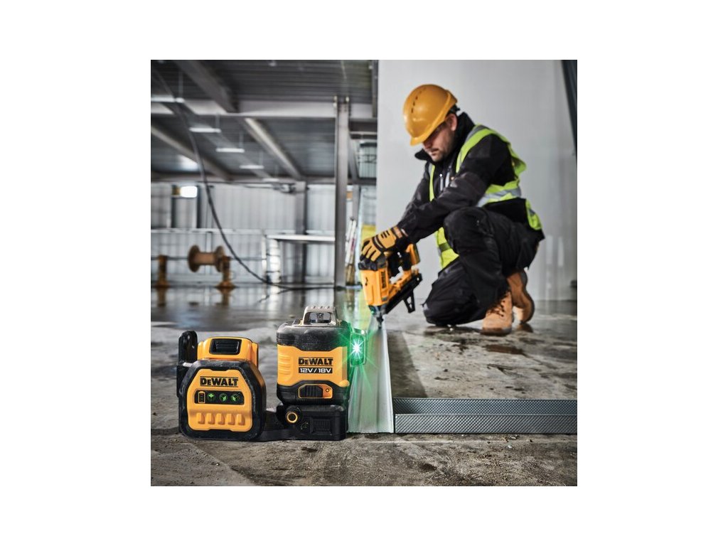 První křížový laser DEWALT kompatibilní s 18V a 12V XR bateriemi. Unikátní jemné nastavení umožňuje uživateli rychle a přesně nastavit svislé paprsky pro lepší přesnost a produktivitu. Se zeleným paprskem pro lepší viditelnost, přesností +/- 3 mm na 10 metrů a gumovým tvarovaným krytem s hodnocením IP54 pro nejnáročnější pracoviště. - NEJVYŠŠÍ KOMPATIBILITA