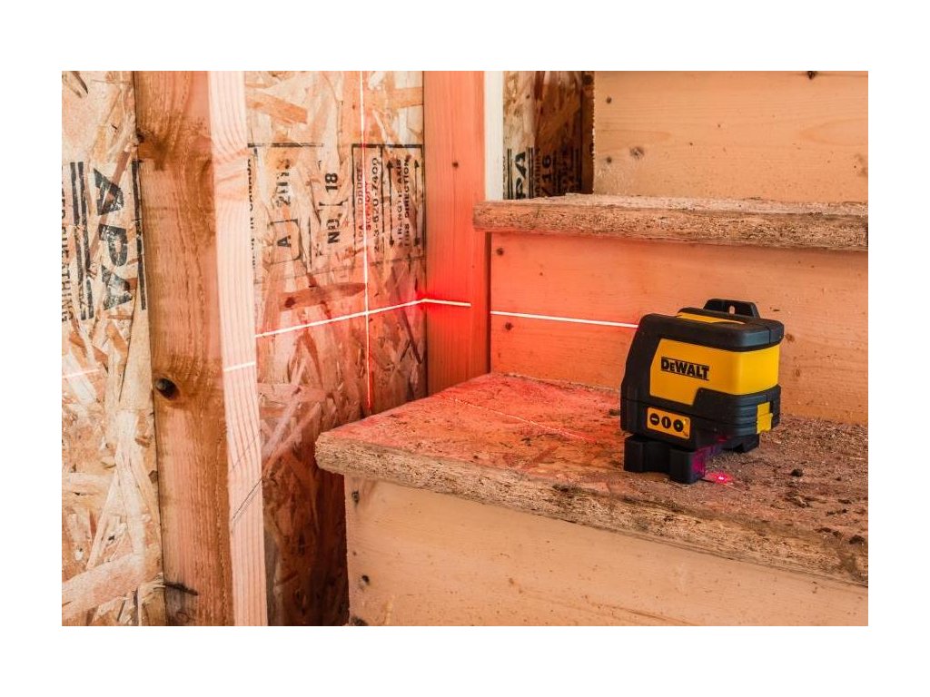 - Vysílá jasné čárové laserové paprsky v horizontální a vertikální rovině.