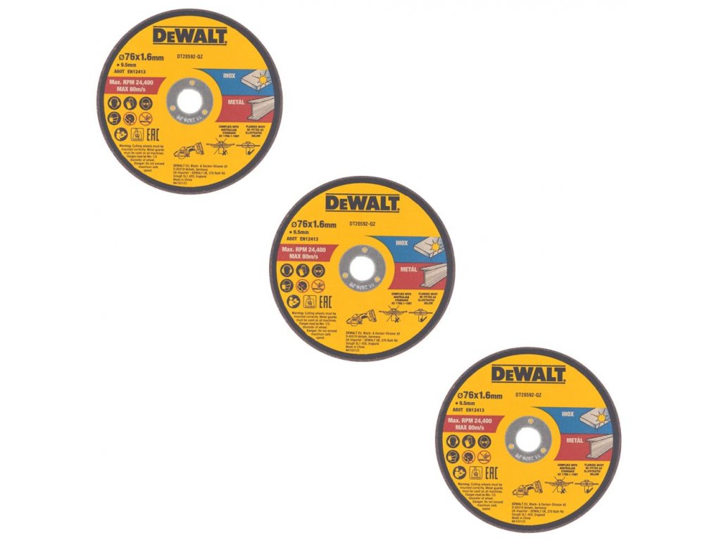DT20592-QZ DEWALT 3DÍLNÁ SADA 75 MM KOTOUČŮ NA ŘEZÁNÍ KOVŮ