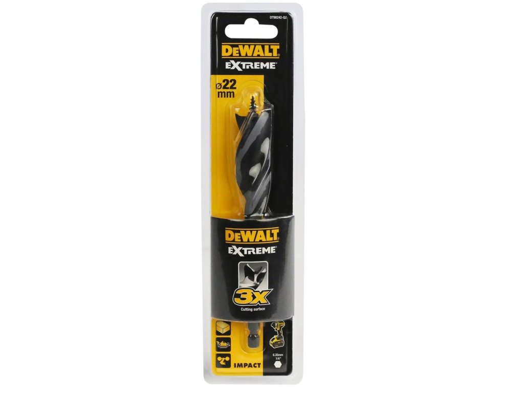 DT90242 DEWALT TŘÍDRÁŽKOVÝ EXTREME VRTÁK DO DŘEVA Ø22 MM X 152 MM