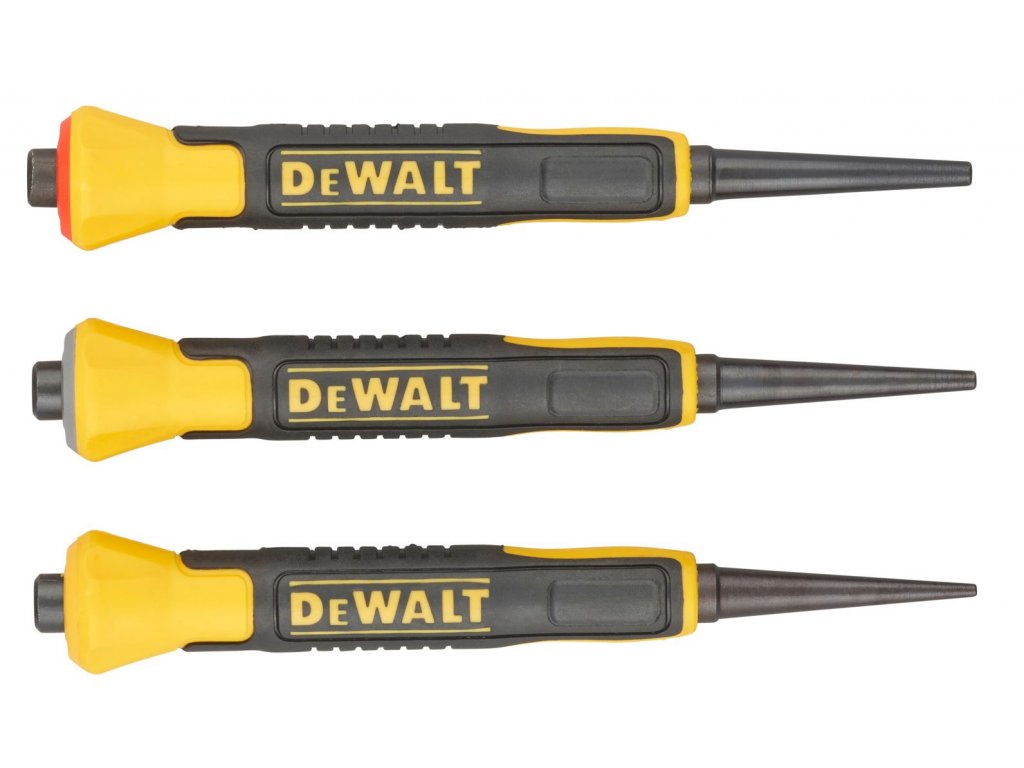 - Tyto průbojníky DeWALT nabízí barevně označené horní části pro snadnou identifikaci a rukojeť ze dvou materiálů poskytující komfort a zajišťující tlumení rázů