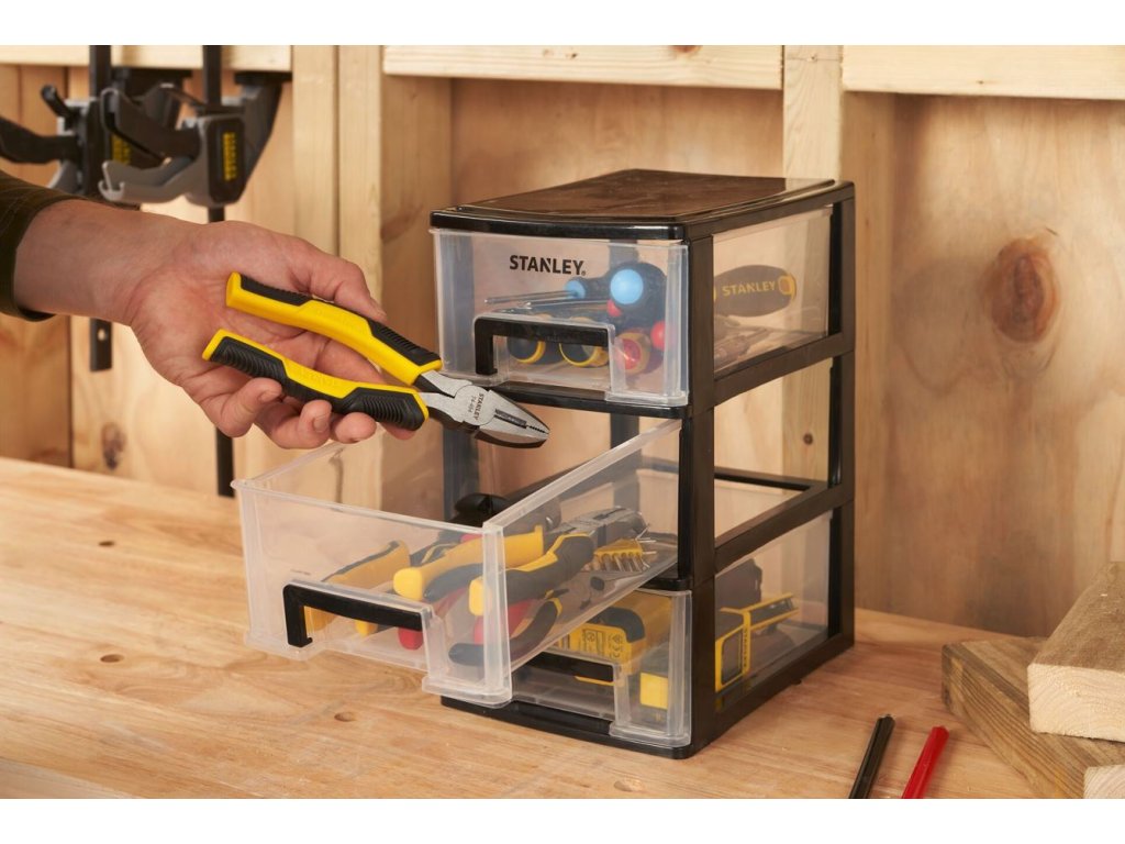 - POHODLNÉ SKLADOVÁNÍ: Střední úložný box STANLEY® se 3 zásuvkami: udržujte pořádek ve svých drobných dílech, upevňovacích prvcích a příslušenství.