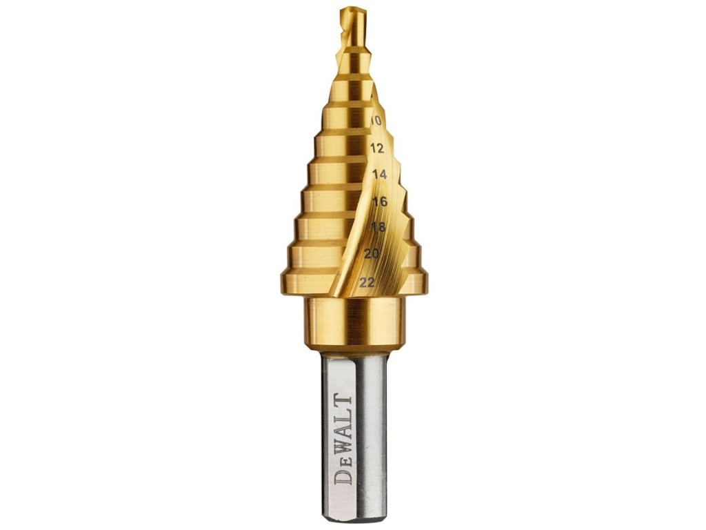 DT90246 DEWALT 4 - 22 MM TITANOVÝ STUPŇOVITÝ VRTÁK, PROTIPROKLUZOVÁ STOPKA O PRŮMĚRU 9 MM
