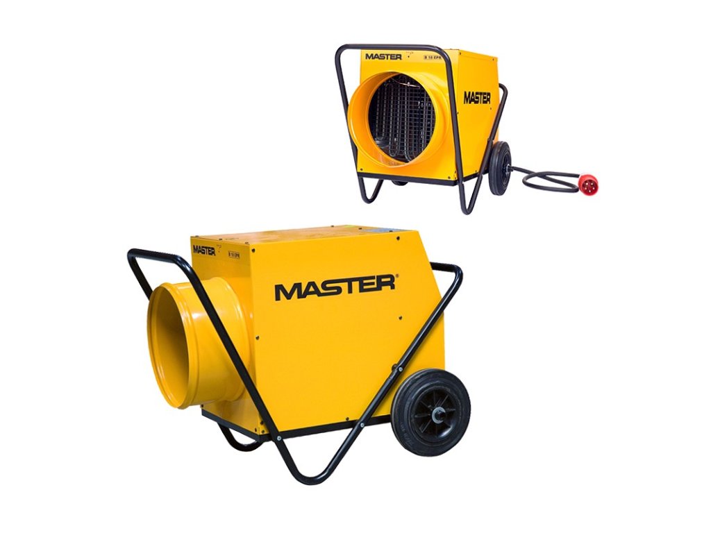 Profesionální elektrický přímotop s ventilátorem Master B18 EPR, vhodný především pro vytápění průmyslových prostor. Mezi jeho hlavní přednosti patří možnost připojení pružné hadice o délce až 7,6 m (průměr 305 mm), která rozšiřuje využití i pro prostory se zvýšeným nebezpečím požáru. K elektrickému topidlu Master B18 EPR je možno doobjednat pokojový termostat pro účinnější kontrolu vytápění.