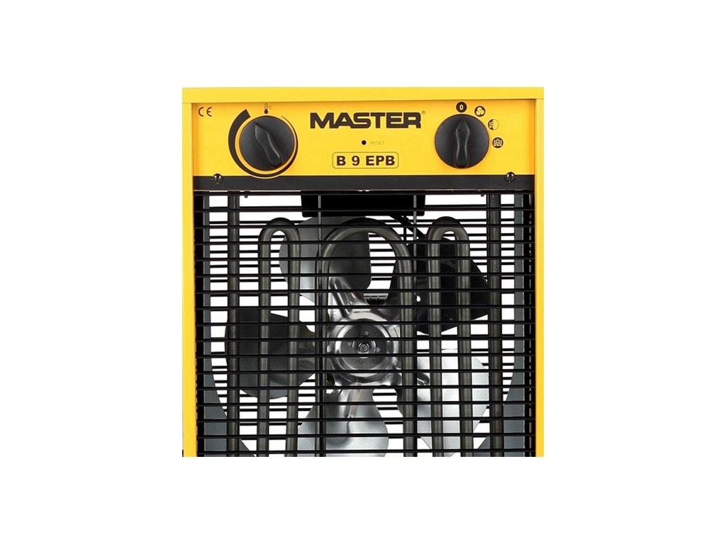 Topidlo Master B9 EPB je určeno pro provoz na třífázový proud - na topidle je vzadu třífázová zásuvka s pětikolíkem 400 V / 16 A. Součástí dodávky však není elektrický napájecí kabel, je nutné jej zakoupit navíc - pětikolík. Přímotop Master B9 EPB má zabudovaný termostat, který automatický sepne topení při poklesu okolní teploty pod předem nastavenou hodnotu. Dochlazováním topných spirál - tuto funkci mají pouze topidla Master řady EPB (nikoliv ECA) - po vypnutí přímotopu zůstane ventilátor zapnutý do té doby, než dostatečně vychladnou topné spirály nezchladnou.