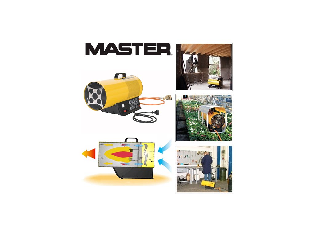 Mobilní plynové topidlo Master BLP11 M disponuje topným výkonem 10,5kW, je vybaveno zabudovaným výkonným ventilátorem zajišťujícím okamžitou distribuci horkého vzduchu v celém vytápěném prostoru, manuálním piezoelektrickým zapalováním a ochranným termostatem proti přehřátí. Plynová hadice s regulátorem tlaku zajišťujícím bezpečnost je u všech plynových topidel Master samozřejmostí. Výhodou plynových topidel Master je relativně ekonomický a oproti naftovým topidlům také poměrně čistý provoz na propan butan. Mobilníplynové topidlo Master BLP11 M je vhodné zejména ke krátkodobému vytápění a rychlému ohřátí vzduchu v prostorech jako jsou např. průmyslové a zemědělské objekty, sklady, stavby, komerční prostory a další. Italský výrobce Master je jedničkou na trhu průmyslových topidel a také zárukou kvality osvědčené zákazníky po celém světě od roku 1954.