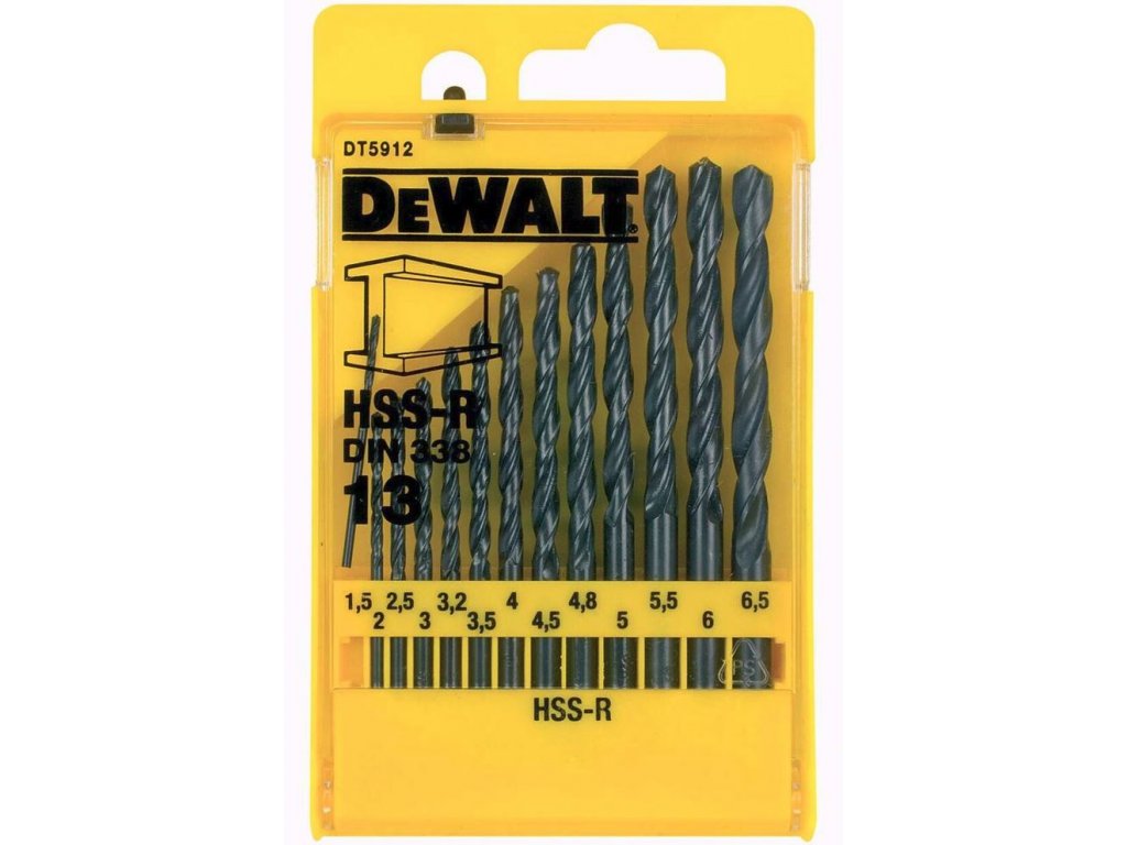 DT5912 DEWALT 13DÍLNÁ SADA VRTÁKŮ DO KOVU HSS-R V PLASTOVÉ KAZETĚ